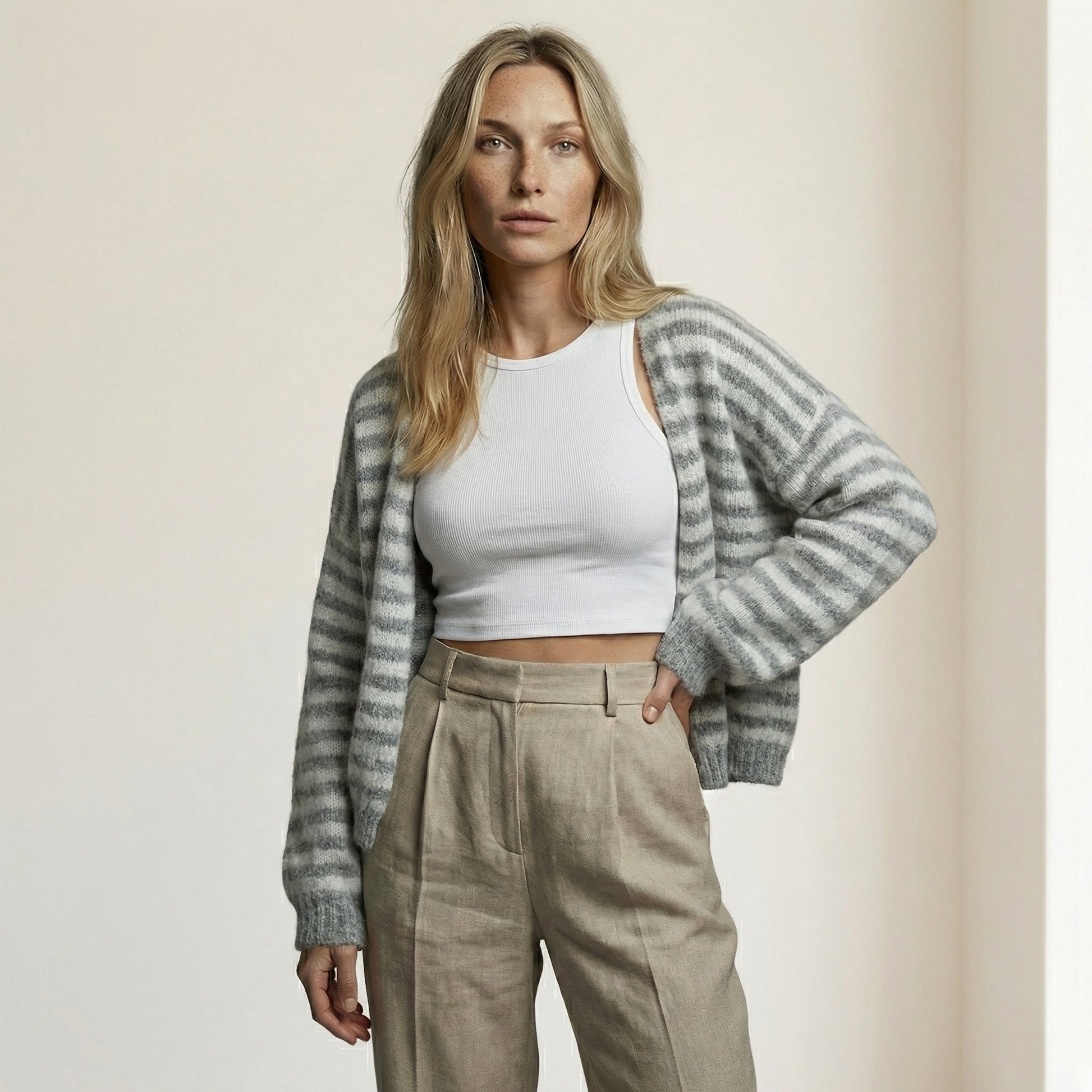 CARDIGÁN A RAYAS GRIS