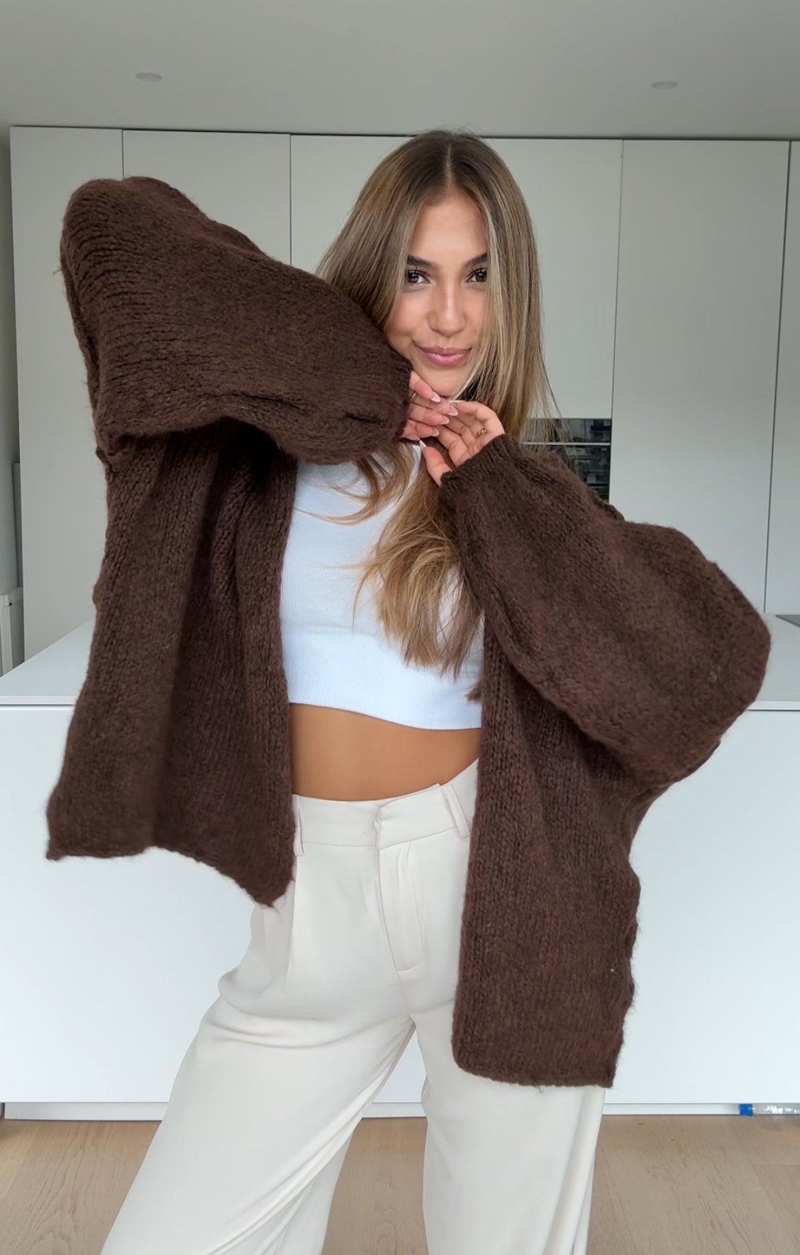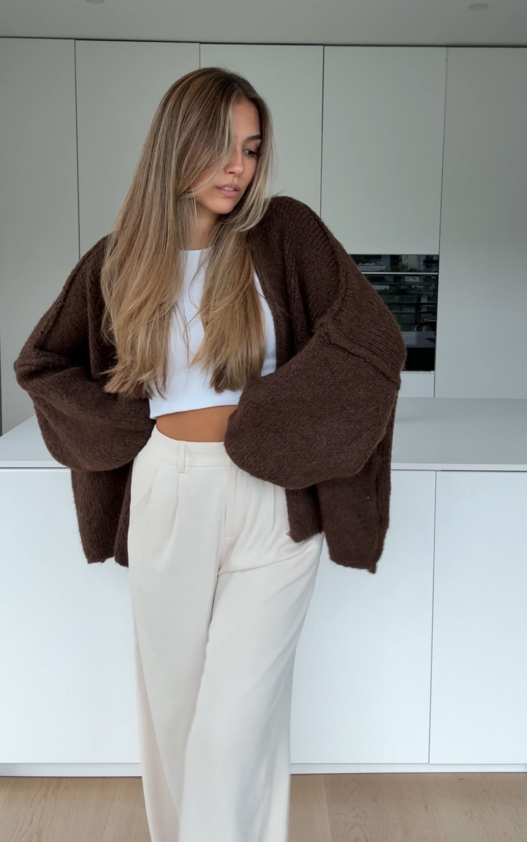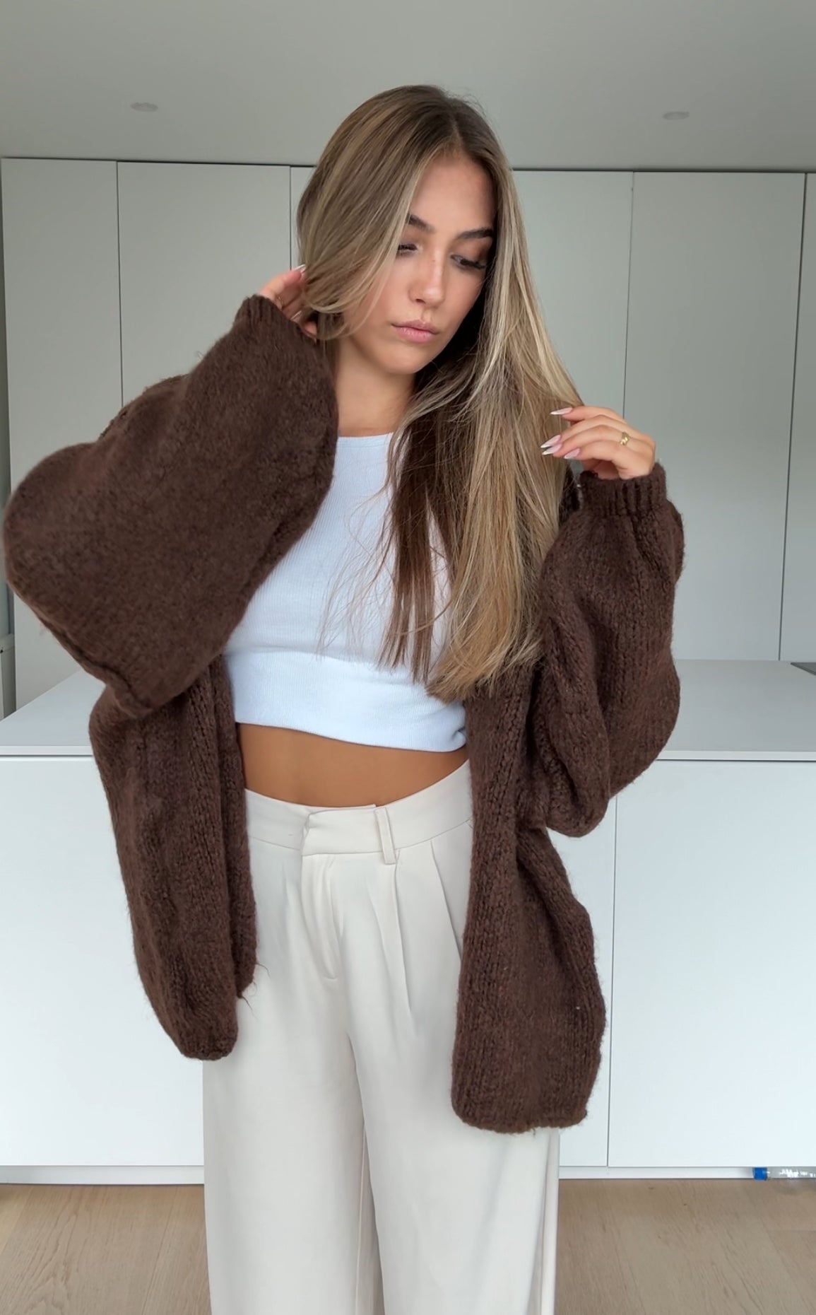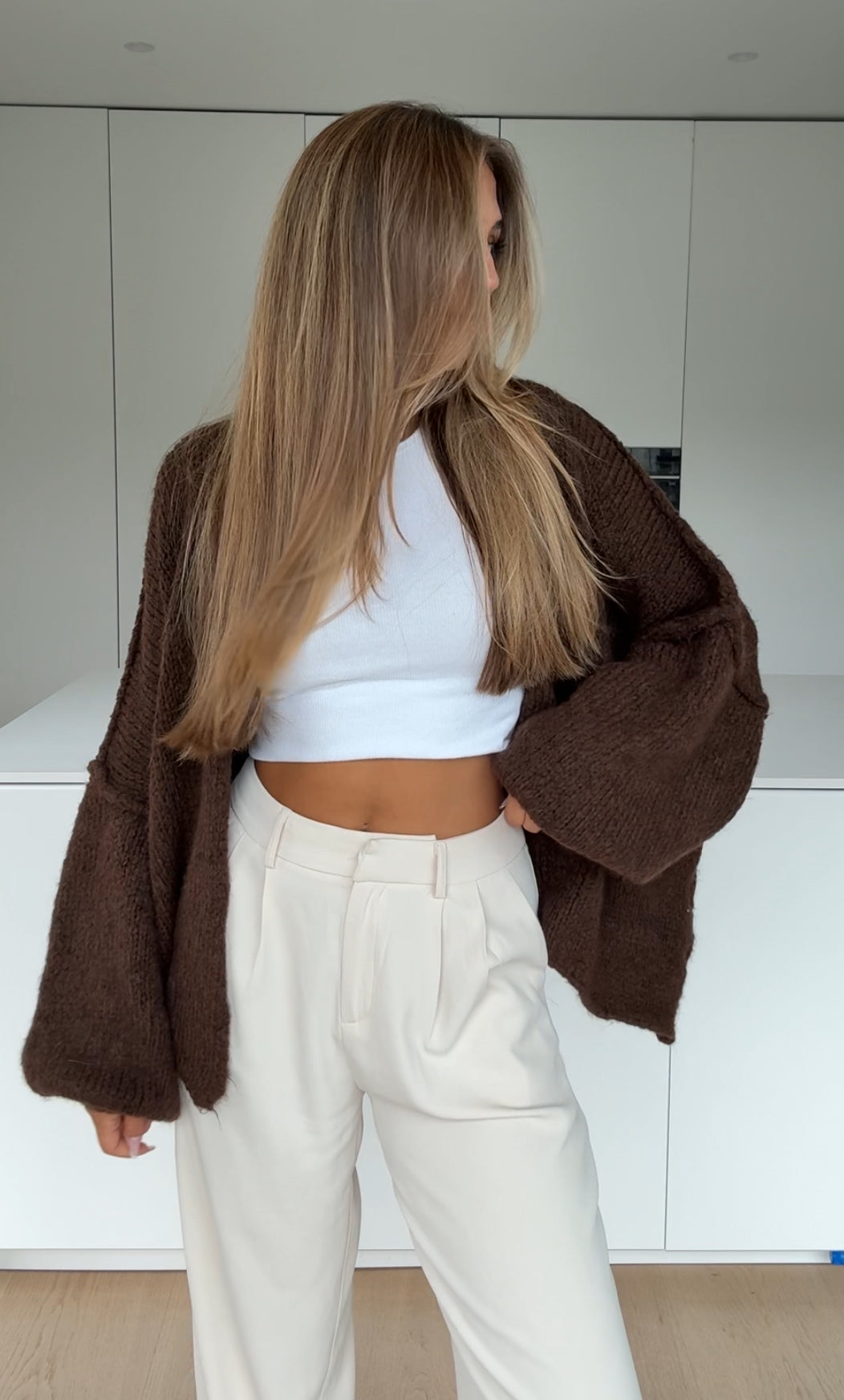 CARDIGÁN CLÁSICO GRUESO CHOCOLATE OSCURO
