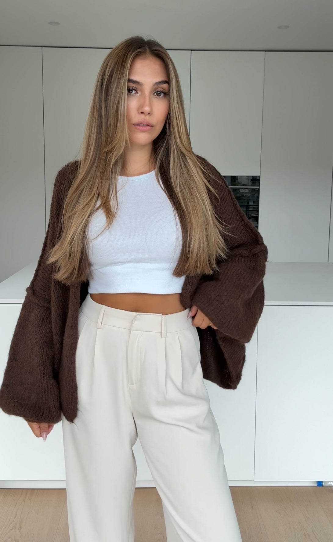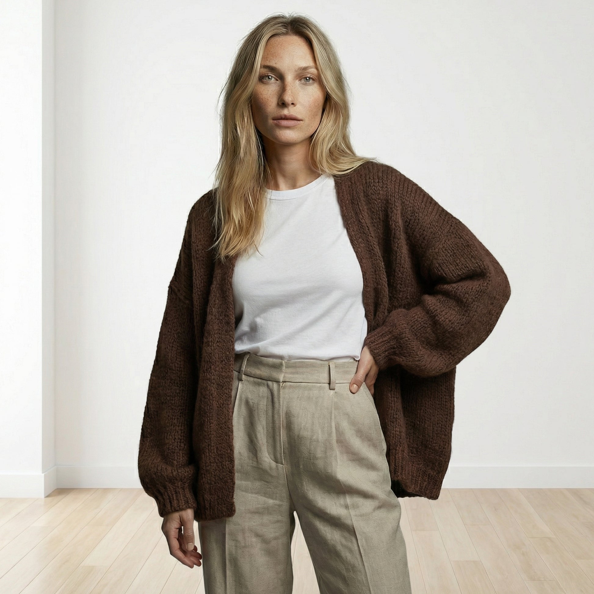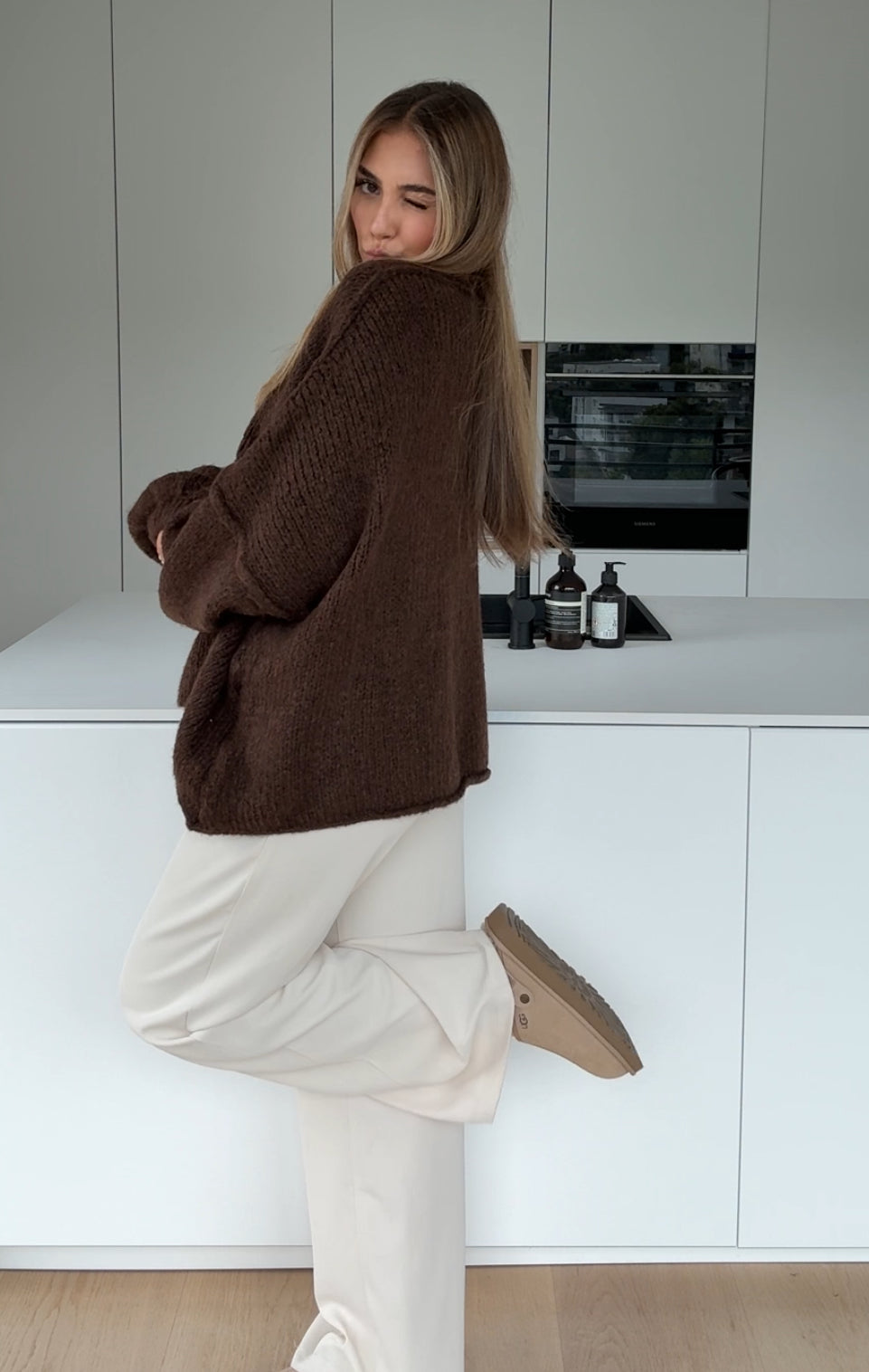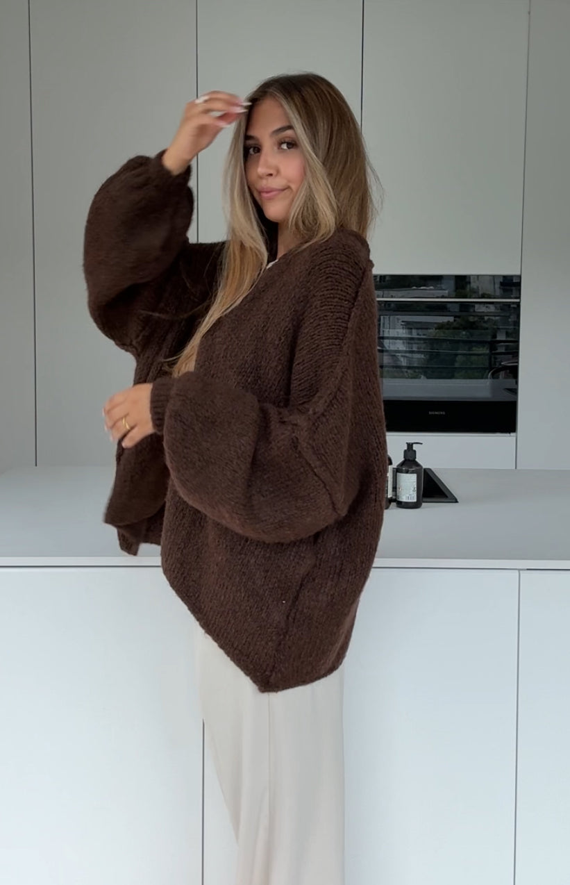 CARDIGÁN CLÁSICO GRUESO CHOCOLATE OSCURO