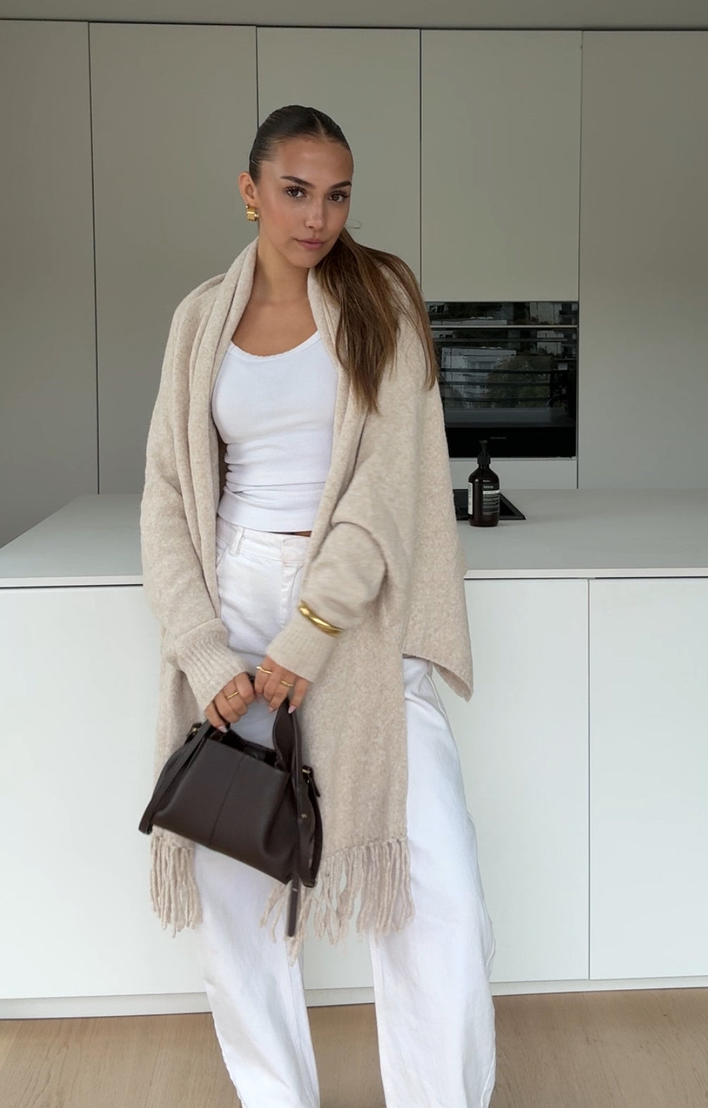 CARDIGÁN CON BUFANDA VAINILLA