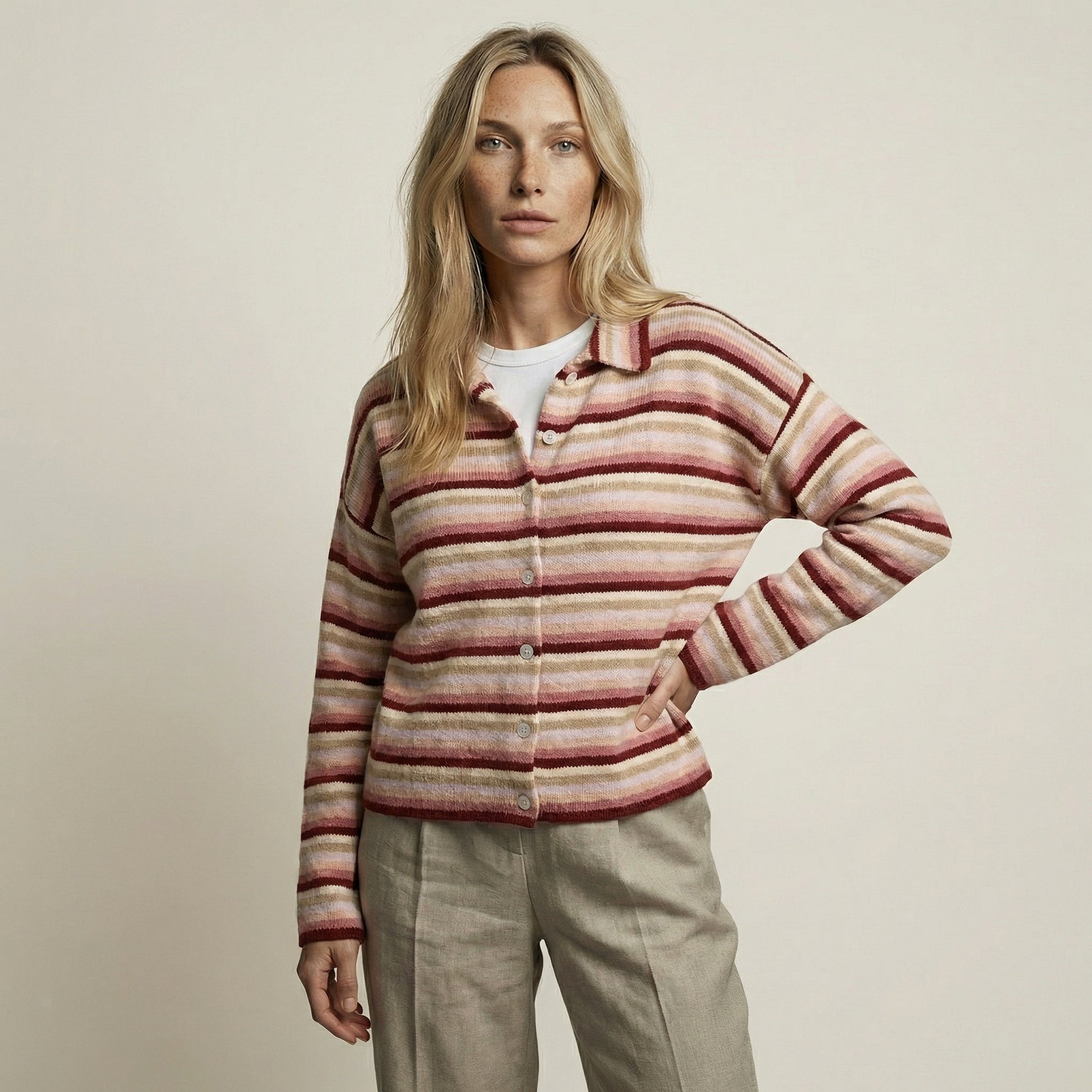 CARDIGÁN DE CUELLO ALTO A RAYAS DE ALGODÓN