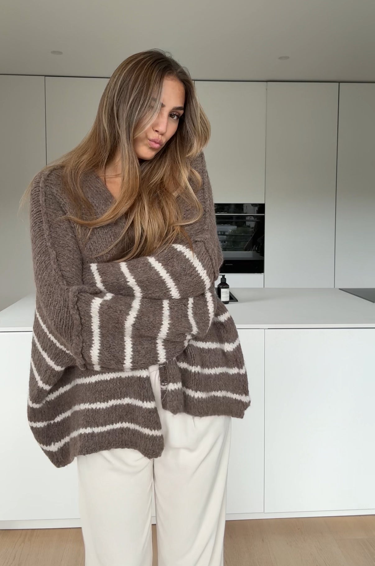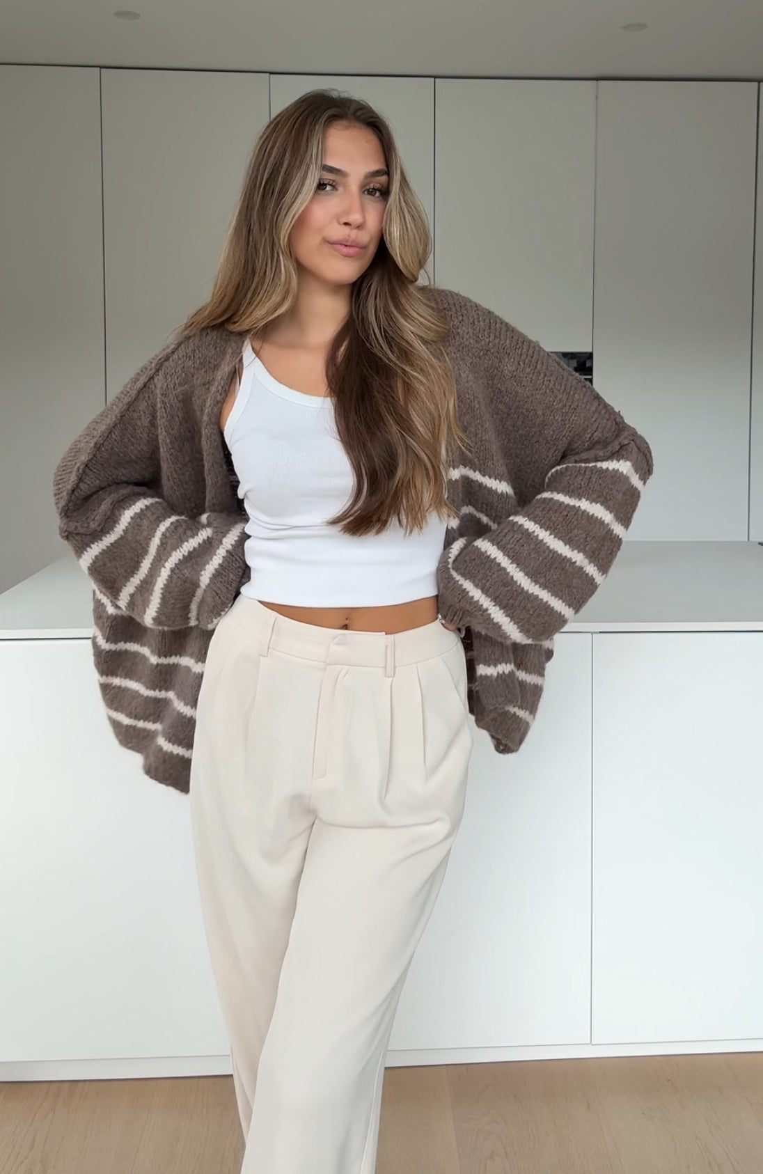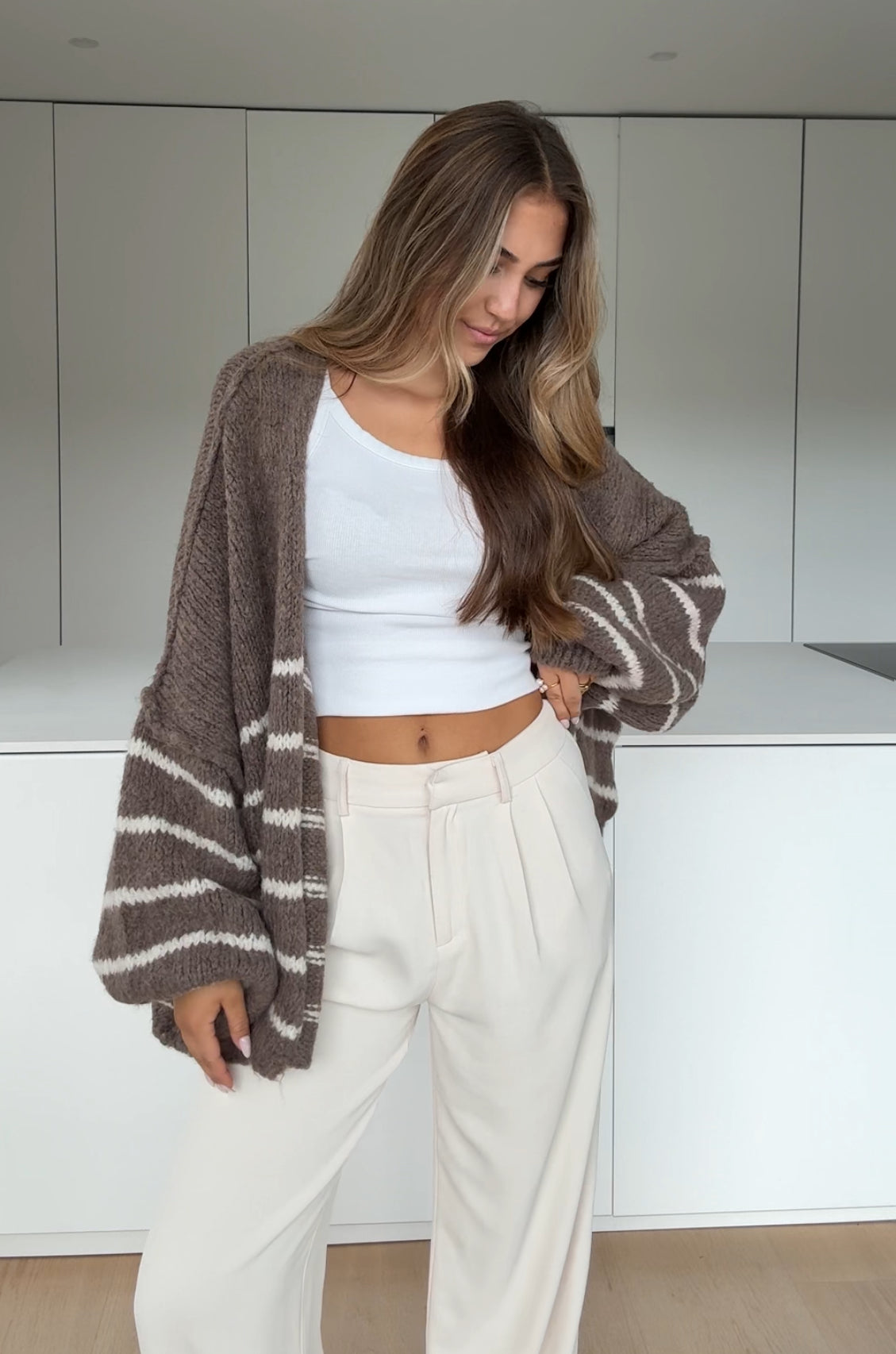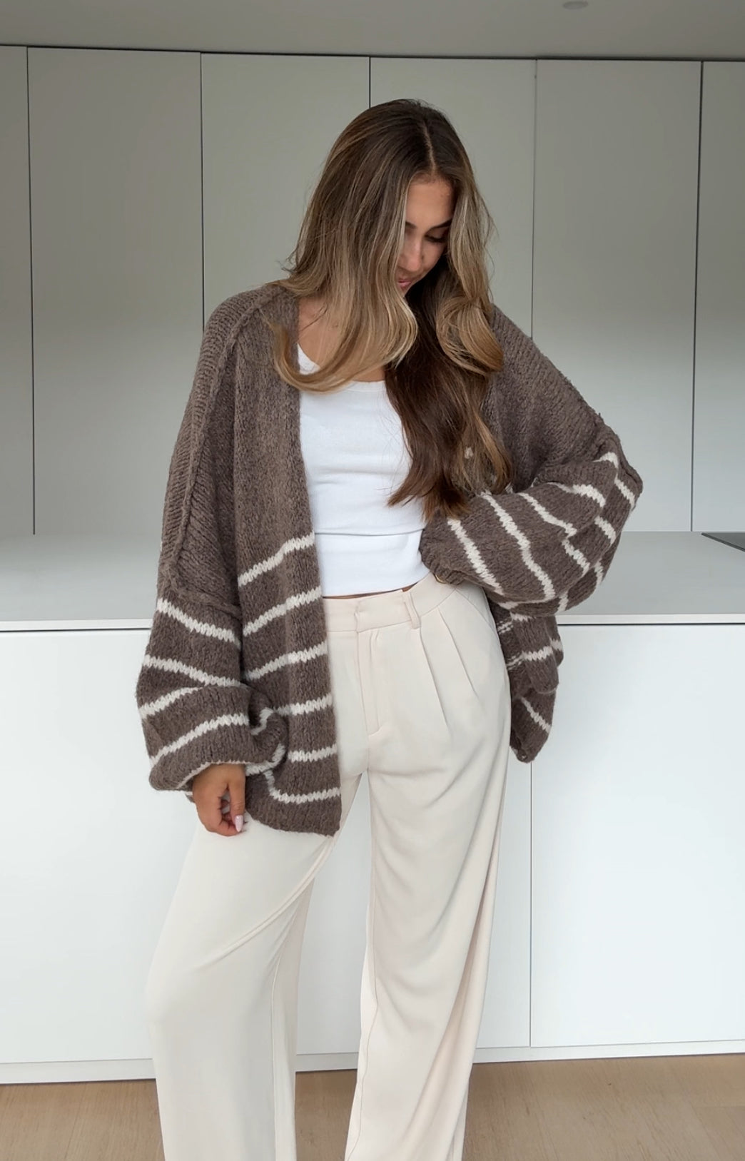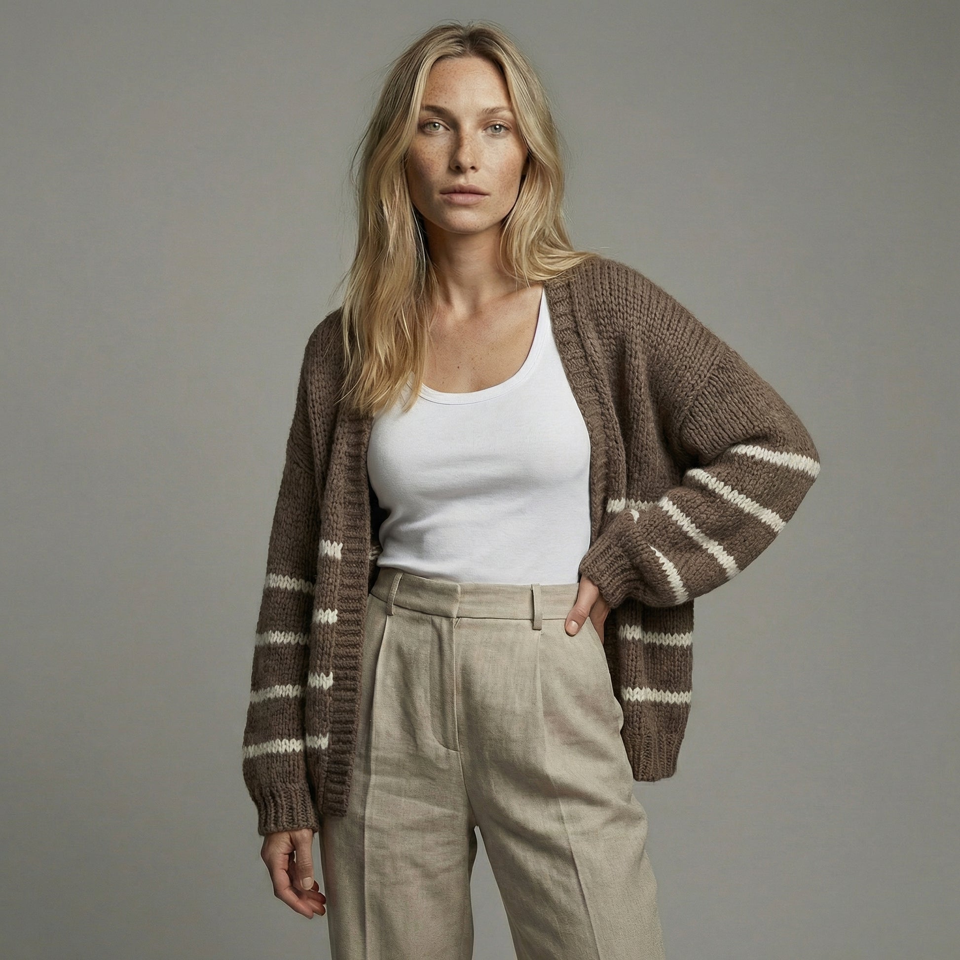 CARDIGÁN RAYADO GRUESO CANELA