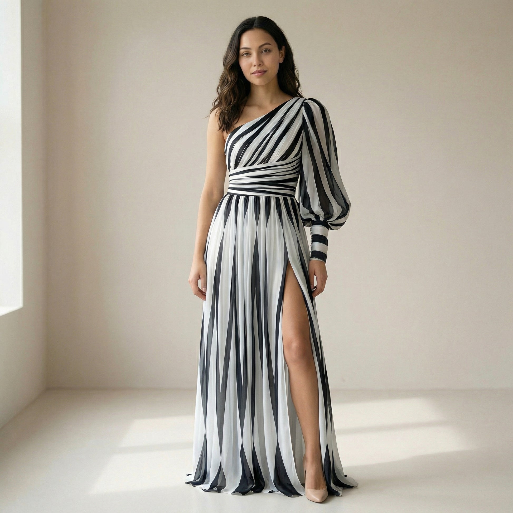 ¿POR QUÉ ELEGIR EL VESTIDO LARGO ELEGANTE A RAYAS DE UNA SOLA MANGA SÉRAPHINE?